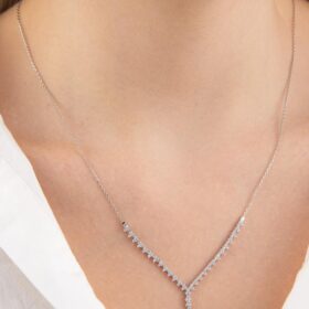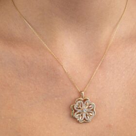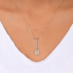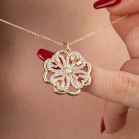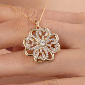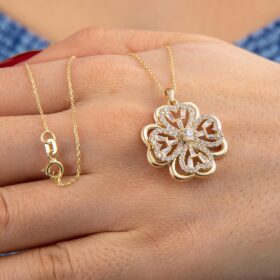 14 Ayar Altın Baget Taşlı Modern Yonca Kolye