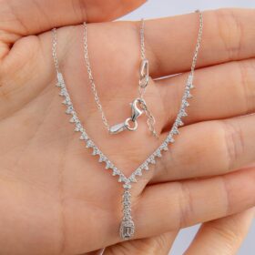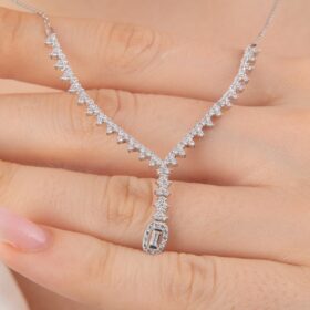 14 Ayar Altın Baget Taş Detaylı Zincirli Kolye