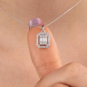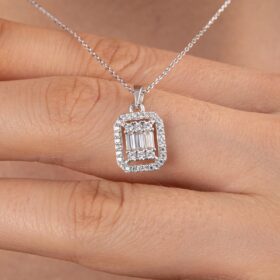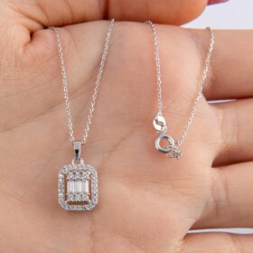 14 Ayar Altın Baget Taşlı Altıgen Kolye