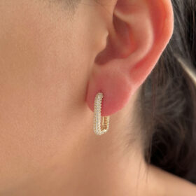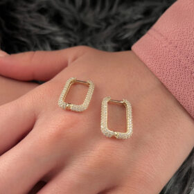 14 Ayar Altın Tamamı Taşlı Dikdörtgen Küpe