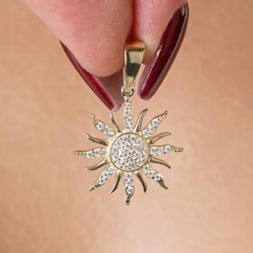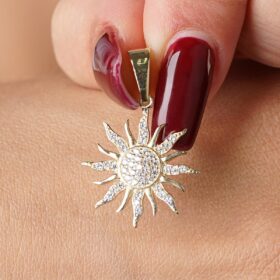 14 Ayar Altın Taş Detaylı Güneş Kolye Ucu