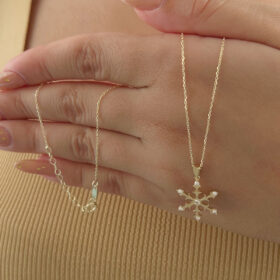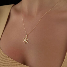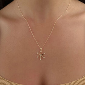 14 Ayar Altın Taş Detaylı Kar Tanesi Kolye