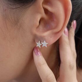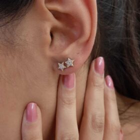 14 Ayar Altın Swarovski Taşlı Küçük Yıldız Küpe