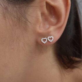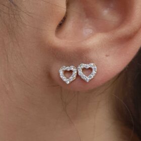 14 Ayar Altın Swarovski Taşlı Kalp Küpe