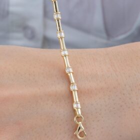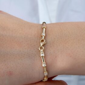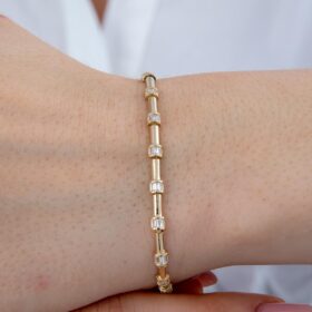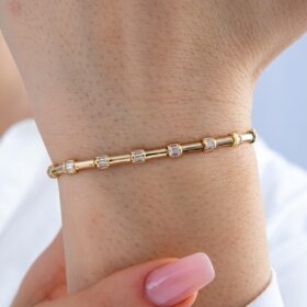 14 Ayar Altın Taşlı İnce Oval Modern Bileklik