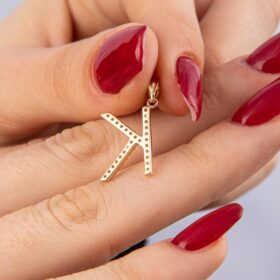 14 Ayar Altın Taşlı K Harf Kolye Ucu