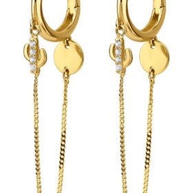 14 Ayar Altın Taşlı Kaktüs Sallantılı Küpe