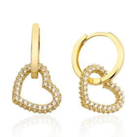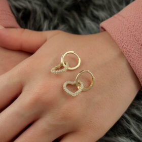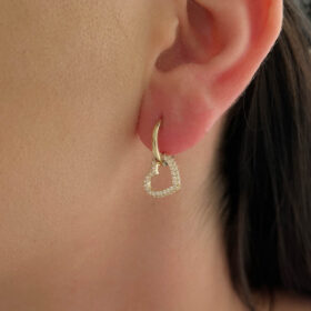 14 Ayar Altın Taşlı Kalp Sallantılı Halka Küpe