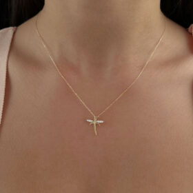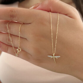 14 Ayar Altın Taşlı Kanat Detaylı Yusufçuk Kolye