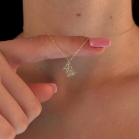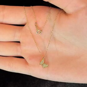 14 Ayar Altın Taşlı Kanat Kelebek Kolye
