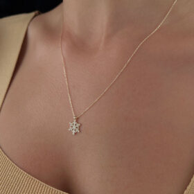 14 Ayar Altın Taşlı Kar Tanesi Kolye