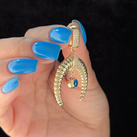 14 Ayar Altın Taşlı Kilitli Göz Detaylı Ters Ay Büyük Kolye Ucu