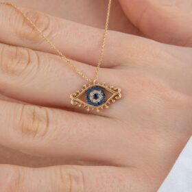14 Ayar Altın Taşlı Kirpik Göz Kolye