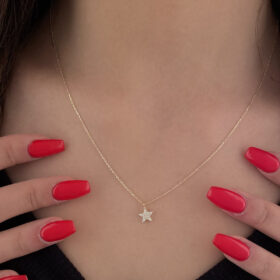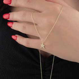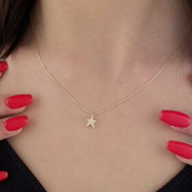 14 Ayar Altın Taşlı Mini Yıldız Kolye