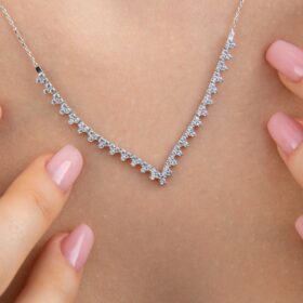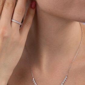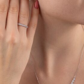 14 Ayar Altın Taşlı Piramit Desenli Set