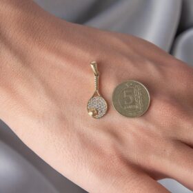 14 Ayar Altın Taşlı Raket Kolye Ucu