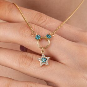 14 Ayar Altın Taşlı Rigel Yıldız Kolye