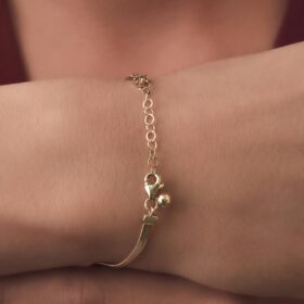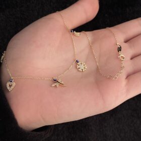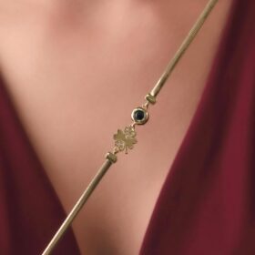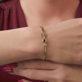 14 Ayar Altın Taşlı Şans Yoncası ve Göz Detaylı İtalyan Balıksırtı Bileklik