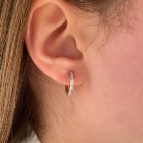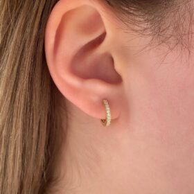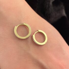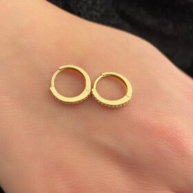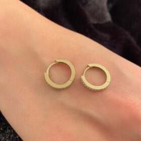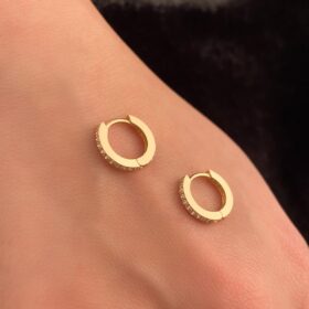14 Ayar Altın Taşlı Tam Tur Mini Halka Küpe