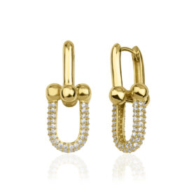 14 Ayar Altın Taşlı Yarımtur Halka Küpe