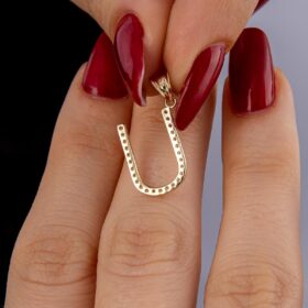 14 Ayar Altın Taşlı U Harf Kolye Ucu