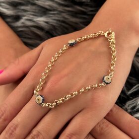 14 Ayar Altın Taşlı Üç Göz Detaylı Doch Bileklik