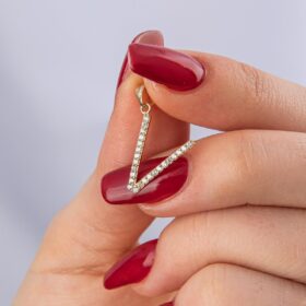 14 Ayar Altın Taşlı V Harf Kolye Ucu