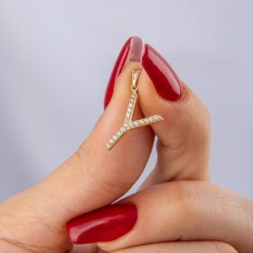 14 Ayar Altın Taşlı Y Harf Kolye Ucu