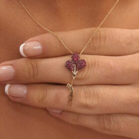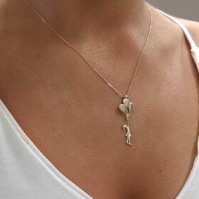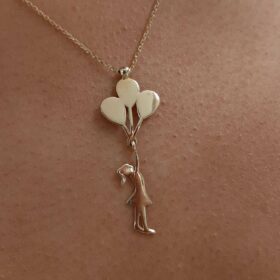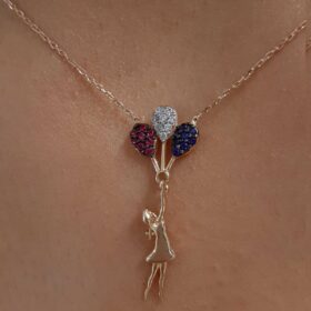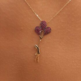 14 Ayar Altın Balonlu Kız Kırmızı Renk Kolye