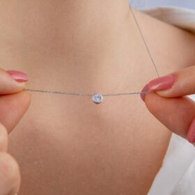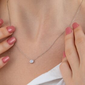 14 Ayar Altın Tek Taş Detaylı Kolye