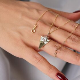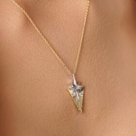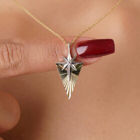 14 Ayar Altın Tektaş Detaylı Işıltılı Kuzey Yıldızı Kolye