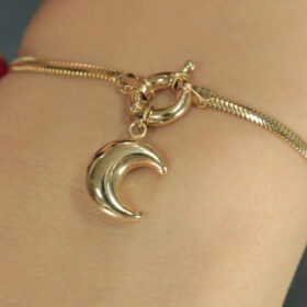 14 Ayar Altın Tombul Ay Detaylı Balıksırtı Bileklik