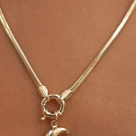 14 Ayar Altın Tombul Ay Detaylı Balıksırtı Kolye