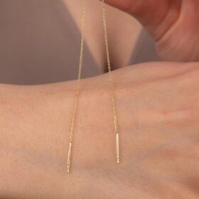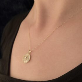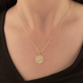 14 Ayar Altın Zincir Detaylı Trapez Kolye