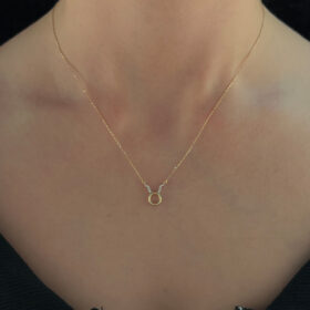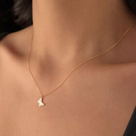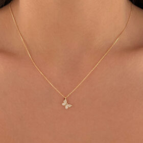 14 Ayar Altın Beyaz Mineli Kelebek Kolye