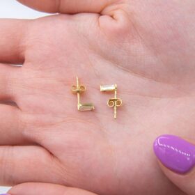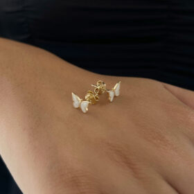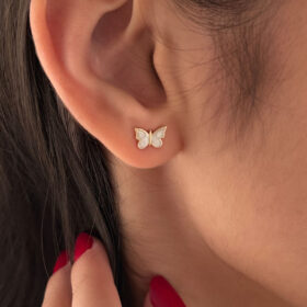 14 Ayar Altın Beyaz Mineli Kelebek Küpe