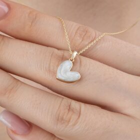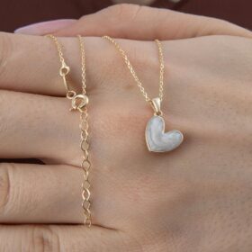 14 Ayar Altın Beyaz Mineli Mini Kalp Kolye