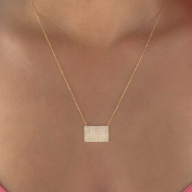14 Ayar Altın Beyaz Taşlı Dikdörtgen Kolye