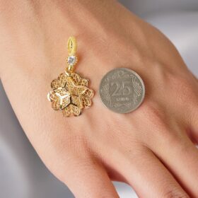 14 Ayar Altın Büyük Gül Motifli Telkari Kolye Ucu