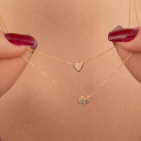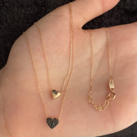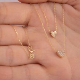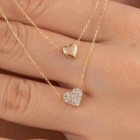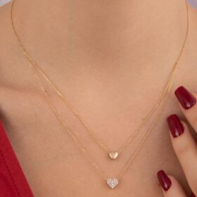 14 Ayar Altın Çift Sıralı Kalp Kolye