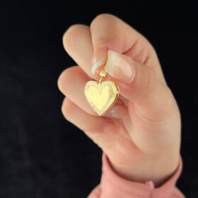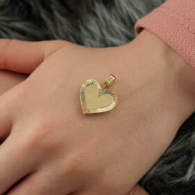 14 Ayar Altın Çift Taraflı Işıltılı Kalp Kolye Ucu