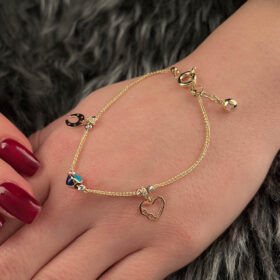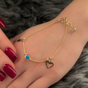 14 Ayar Altın Çok Renkli Aşk Temalı Şans Bilekliği