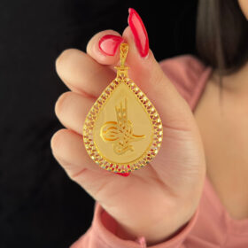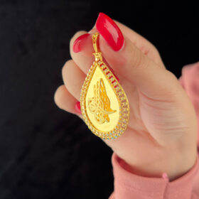 14 Ayar Altın Damla Desenli Tuğra Kolye Ucu