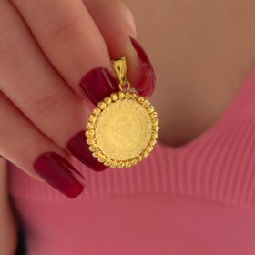 14 Ayar Altın Dorika Top Detaylı Çeyrek Altınlı Kolye Ucu