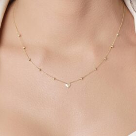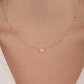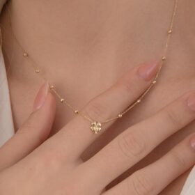 14 Ayar Altın Dorika Top Detaylı Kalp Kolye