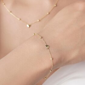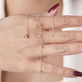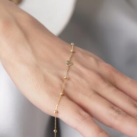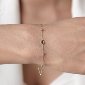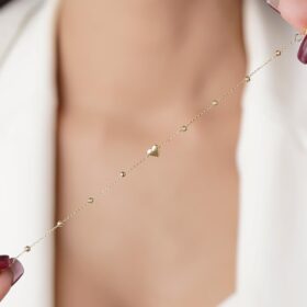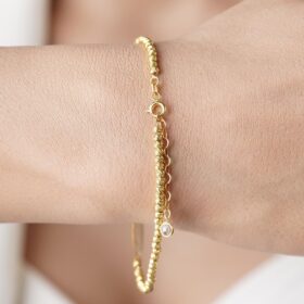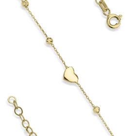 14 Ayar Altın Dorika Top Detaylı Kalpli Bileklik