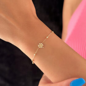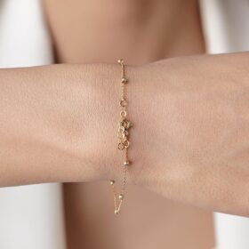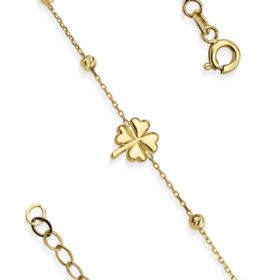 14 Ayar Altın Dorika Top Detaylı Yonca Bileklik