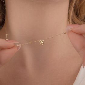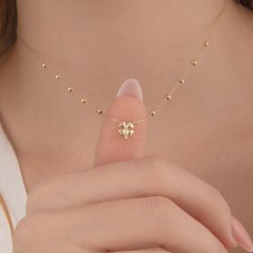 14 Ayar Altın Dorika Top Detaylı Yonca Kolye