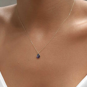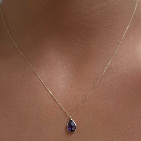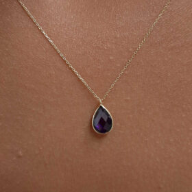 14 Ayar Altın Ametist Taşlı Damla Kolye