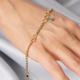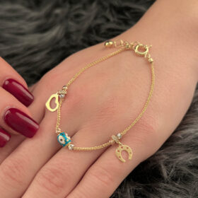 14 Ayar Altın Göz Detaylı Şans Bilekliği